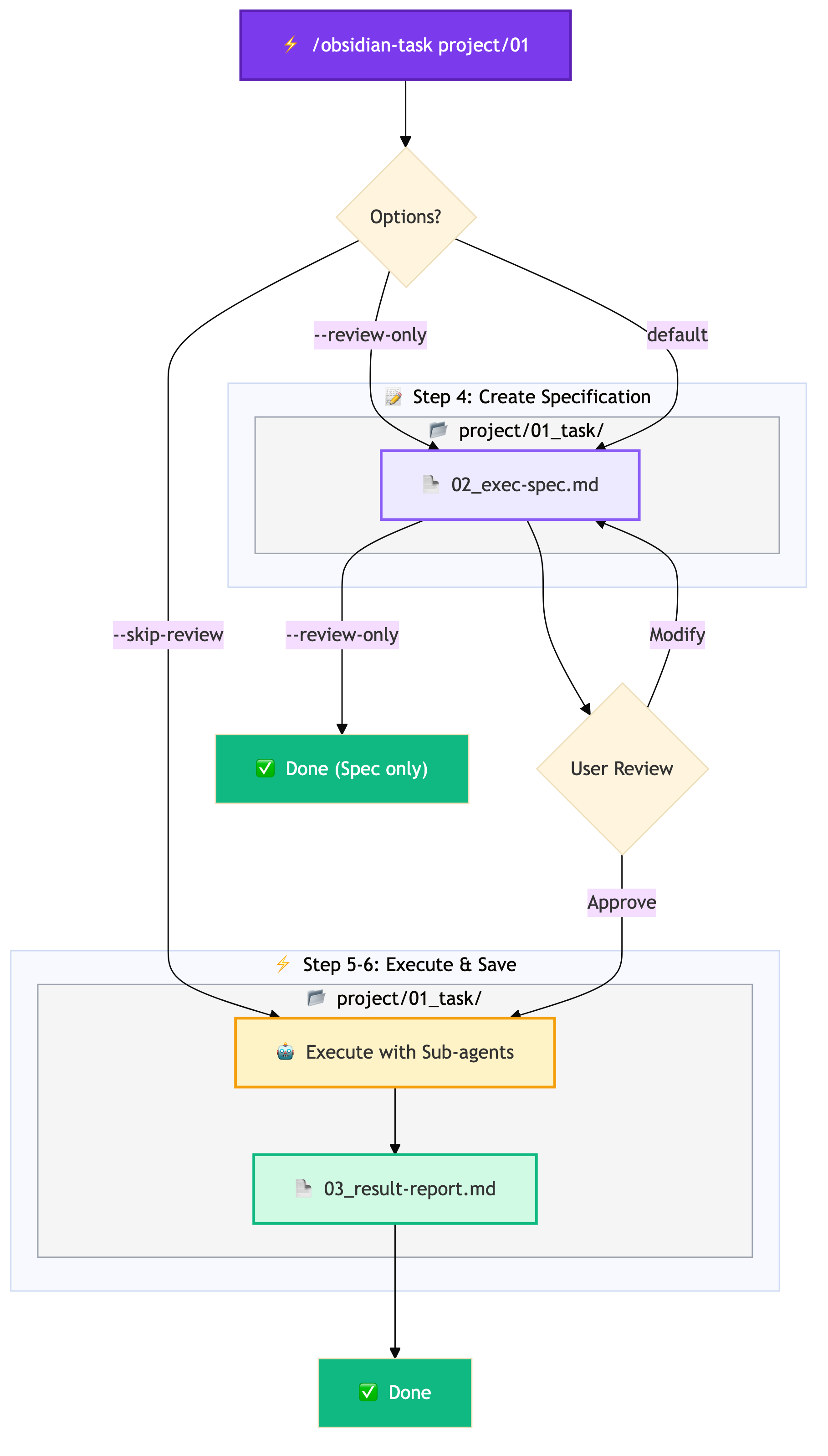 /obsidian-task project/01 --review-only # Create spec only